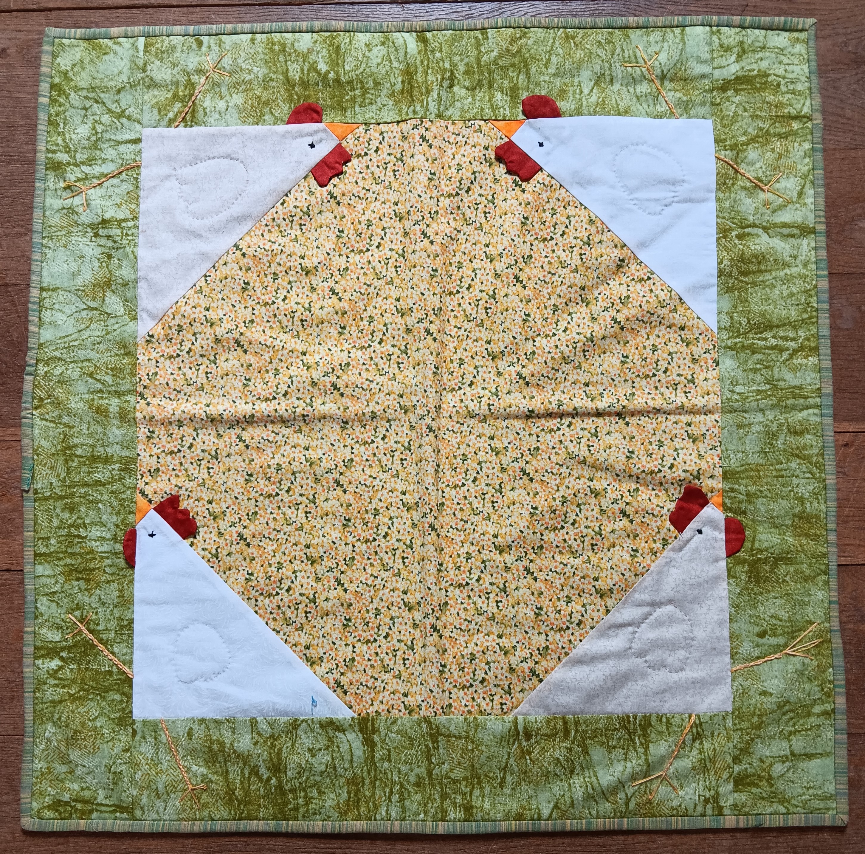 Der Quilt ist nicht neuwertig und nicht gebraucht, er wurde bisher als Deko- und Ausstellungsquilt genutzt. Wir fertigen keine Quilts für den Verkauf, sondern Modelle als Beispiele für die Stoffverarbeitung.