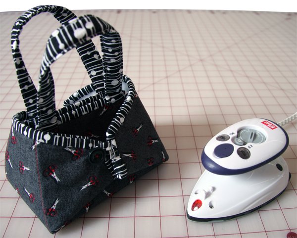 In solch einer schicken und sehr praktischen Tasche ist Ihr Bügeleisen gut aufgehoben und geschützt, wenn es mit zum Patchworkkurs oder mit auf die Reise darf. Die Innenseite ist sogar als Bügelunterlage nutzbar, da sie mit Thermolam gefüttert ist. Ganz bewusst wurde der Prototyp der Tasche von Frau Hensel (Mitarbeiterin der Firma Freudenberg) für ein Bügeleisen ohne Dampf gefertigt. Wissen Sie noch wie man früher Hosen und Kleidung aufgedämpft hat, wie man Bügelfalten eingebügelt hat? Dann wissen Sie auch, (wie Freudenberg empfiehlt) aufbügelbare Einlagen ohne Dampfbügeleisen aber mit Dampf zu fixieren: Mittels eines feuchten Bügeltuchs. Dadurch entwickelt sich ein heißerer Dampf, als es mit einem Haushaltsdampfbügeleisen möglich ist. Im Handarbeitshaus wird auch seit Anbeginn bei allen Patchworkarbeiten und beim Bügeln aller Stoffe nur ohne Dampf gebügelt! So kann ausgeschlossen werden, das Wasser und Kalkflecken auf die Stoffe kommen. Auch muss es beim Bügeln der Stoffe für den Zuschnitt der Precuts zügig gehen, so dass die Gefahr besteht, dass die Stoffe noch feucht aufeinander gelegt werden. Nach dieser kleinen individuellen Bügelgeschichte möchten wir Ihnen noch eine Idee für die Bügeleisentasche vermitteln. Sie ist das passende „Verpackungsgeschenk“, wenn Sie ein Patchworkbügeleisen verschenken möchten. Wenn Sie eine individuelle Stoffauswahl treffen, erhalten Sie das Material bei der Größe S für 3 und bei M und L für je 2 gleiche Taschen. Mit jeder Materialpackung erhalten Sie die Schnittmuster in Originalgröße für alle 3 Taschengrößen. Die Schnitte können Sie natürlich Ihrem eigenen Bügeleisen anpassen. Es gibt auch die Ideen die Taschen in anderen Größen als riesige Badetasche, die gleichzeitig als Strandunterlage zu nutzen ist oder als Babywickeltasche. Bestimmt haben Sie noch weitere Ideen. Zusätzlich zur Materialpackung benötigen Sie 2 Knöpfe pro Tasche.