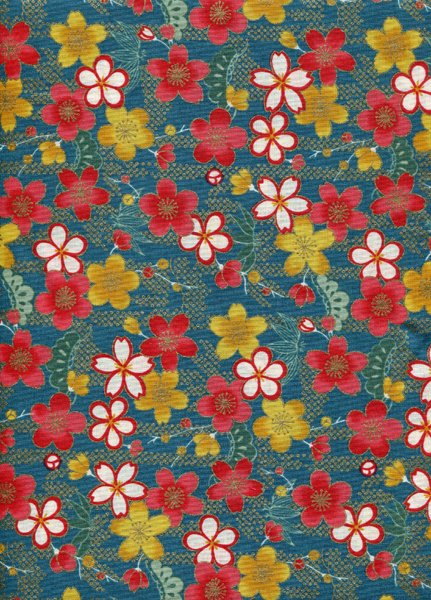Baumwollstoff Japanische Blüten mit gold auf türkis
